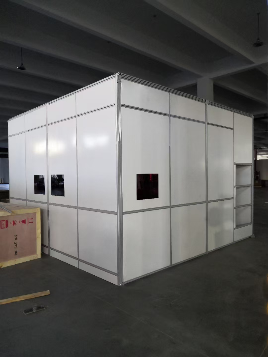 材料:通常采用金屬夾芯板(如巖棉夾芯板,兼具保溫、防火、隔音功能)或工業(yè)鋼板搭建。墻壁表面光滑,不易積灰,易于清潔。