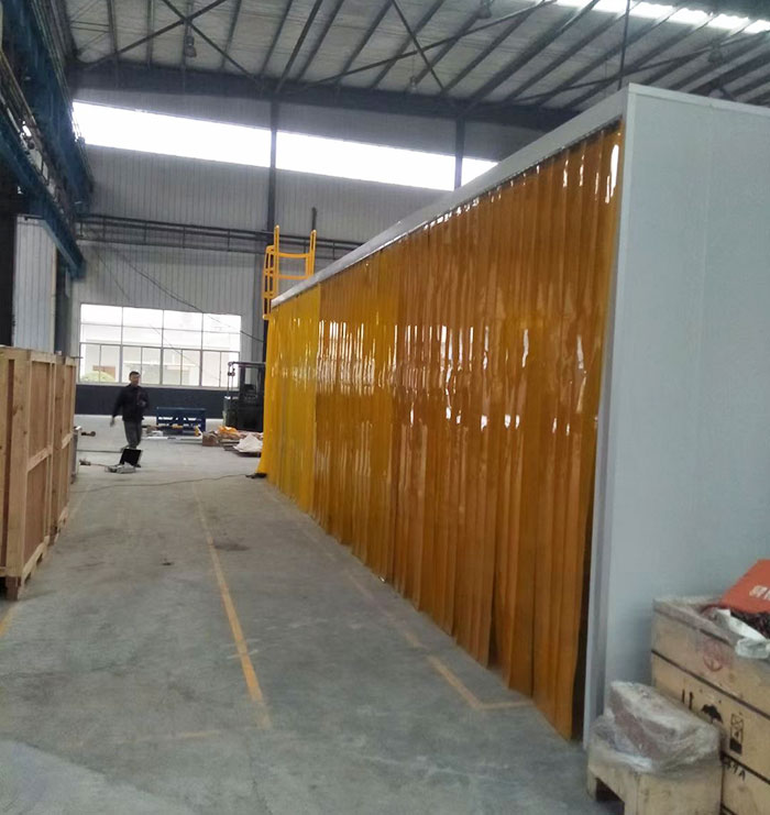 1.配套焊接機(jī)器人工作站的除塵軟簾房,靈活輕便,造價(jià)便宜,且具有一定的防護(hù)防塵效果。